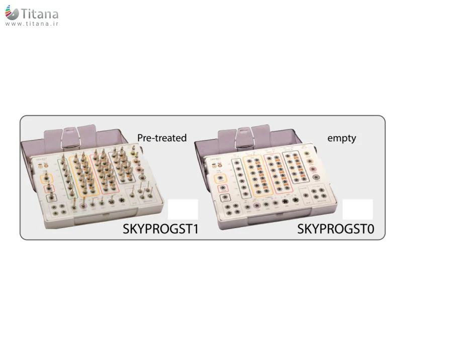 3 عدد پایلوت دریل گاید 40 عدد دریل استاپر ثابت 4 عدد نک دریل(کانتر سینک/کرستال دریل) 4 عدد پین ثابت 1 عدد دریل بدون استاپر 2 عدد درایور پروتز 8 عدد درایور فیکسچر اسکای – کوپا اسکای